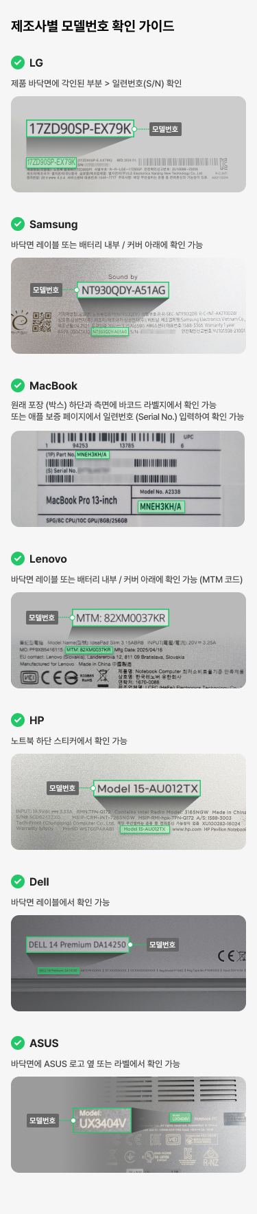 ※ 모델정보는 노트북 뒷면을 보시면 확인 할 수 있습니다.